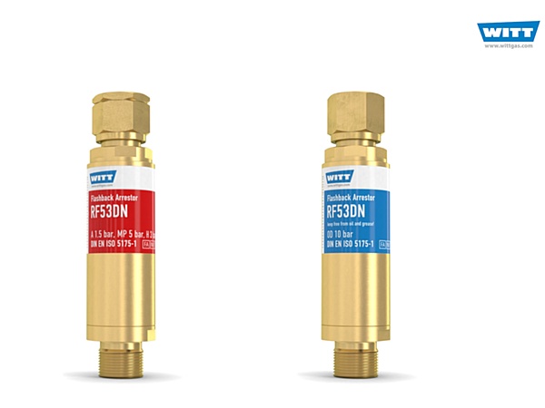 Flashback Arrestor RF53DN Universal flashback arrestor, certified to DIN EN ISO 5175-1, with pressure relief valve [RV] highest quality from the world market leader safety elements: flame arrestor [FA], temperature-sensitive cut-off valve [TV], non-return valve [NV], filter on gas inlet, pressure relief valve every arrestor 100% tested IBExU certified 25,5 X 101 mm, 260 g acetylene max. 11,5 m³/h (free flow-off) fuel gases max. 105 m³/h (free flow-off) oxygen max. 56 m³/h (free flow-off)